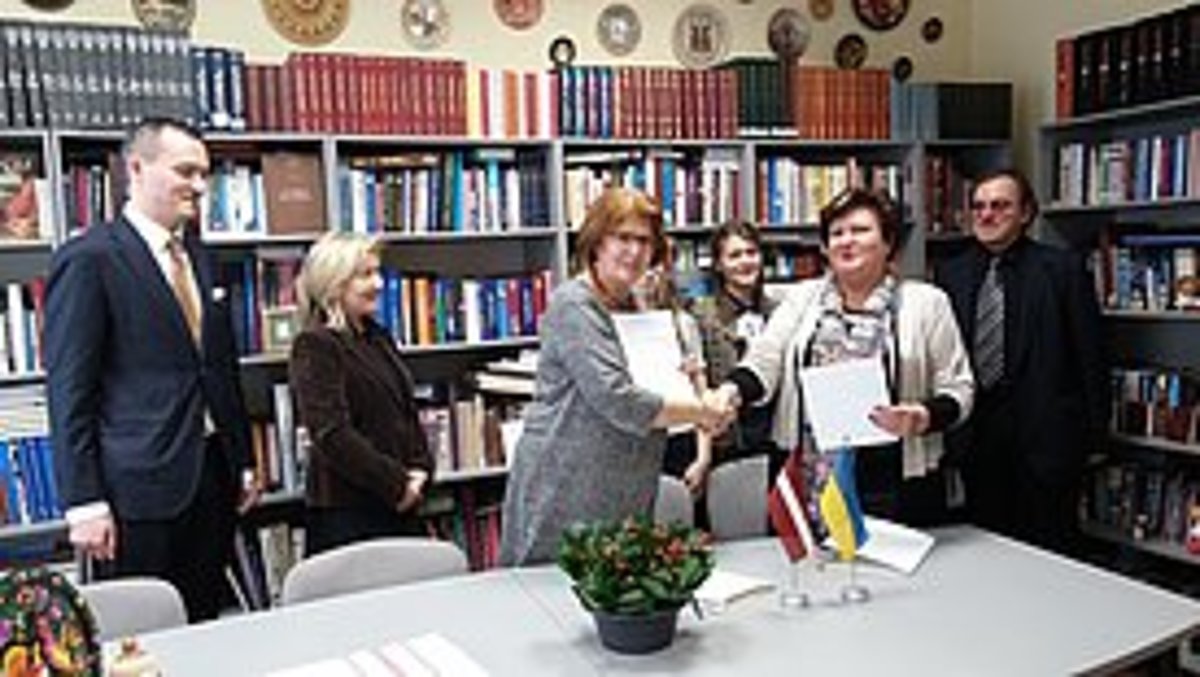 Latvijas Universitātes (LU) Akadēmiskā bibliotēka (dibināta 1524. gadā) kā kultūras un zināšanu centrs, intelektuālo vērtību glabātāja un uzturētāja, nodrošina Latvijai nozīmīgu seniespiedumu un rokrakstu krājuma saglabāšanu un pieejamību. Misiņa bibliotēka (dibināta 1885. gadā) ir lielākā nacionālās literatūras krātuve. Pasniedzējiem un skolēniem ir pieejami informācijas resursi arī no Austrijas bibliotēkas un Šveices lasītavas, Baltkrievijas un citu informācijas centru krājumiem.LU Akadēmiskās bibliotēkas Ukrainas Informācijas centrs (UIC) darbojas kopš 2005. gada. UIC krājums veidots un tiek attīstīts, lai veicinātu integrāciju un paplašinātu savstarpējās attiecības izglītības, zinātniskās un kultūras informācijas sfērā starp Latviju un Ukrainu, sniegtu zinātniski informatīvos pakalpojumus. UIC darba saturs ir informēt sabiedrību par Ukrainas zinātni, kultūru un literatūru, kā arī par citām mūsdienu norisēm, organizēt seminārus, konferences, izstādes, sekmēt kontaktu dibināšanu starp Latvijas Universitāti un Ukrainas augstskolām, valsts un sabiedriskajām organizācijām.Vispārējās izglītības posmā Latvijā sekmīgi darbojas Rīgas Ukraiņu vidusskola, kuras attīstībā Ukrainas valsts sniedz nozīmīgu atbalstu. Rīgas Ukraiņu vidusskola viena no pirmajām 1993.gadā ieviesa bilingvālo modeli. Ukraiņu etniskās identitātes veicināšanai skolā tiek nodrošināts daudzveidīgs interešu izglītības un fakultatīvo nodarbību piedāvājums, tiek īstenoti sadarbības projekti ar Ukrainu, Vāciju un Kanādu. 2017./2018. mācību gadā skolā mācās 256 skolēni. Skolas attīstībā un mazākumtautību izglītības popularizēšanā milzīgi nopelni ir skolas ilggadējai direktorei Lidijai Kravčenko, kura daudzus gadus vadījusi arī Izglītības un Zinātnes Ministrijas Konsultatīvo padomi mazākumtautību jautājumos, ir saņēmusi gan Latvijas, gan Ukrainas valsts augstākos apbalvojumus, Latvijas Republikas Ministru kabineta un Izglītības un zinātnes ministrijas Atzinības rakstus.Aktuālā sadarbības joma ar Ukrainu ir zinātne un tehnoloģijas, starp abu valstu Izglītības un zinātnes ministrijām vienošanās par kopīgas sadarbības programmas īstenošanu zinātnē un tehnoloģijās ir parakstīta iepriekš. 2016. gada 31. augustā Zinātnes un tehnoloģiju programmas apvienotā komisija pieņēma lēmumu par atbalstu sešu kopīgu projektu īstenošanai medicīnas zinātnēs, enerģētikā, materiālu zinātnēs un sociālajās zinātnēs.
