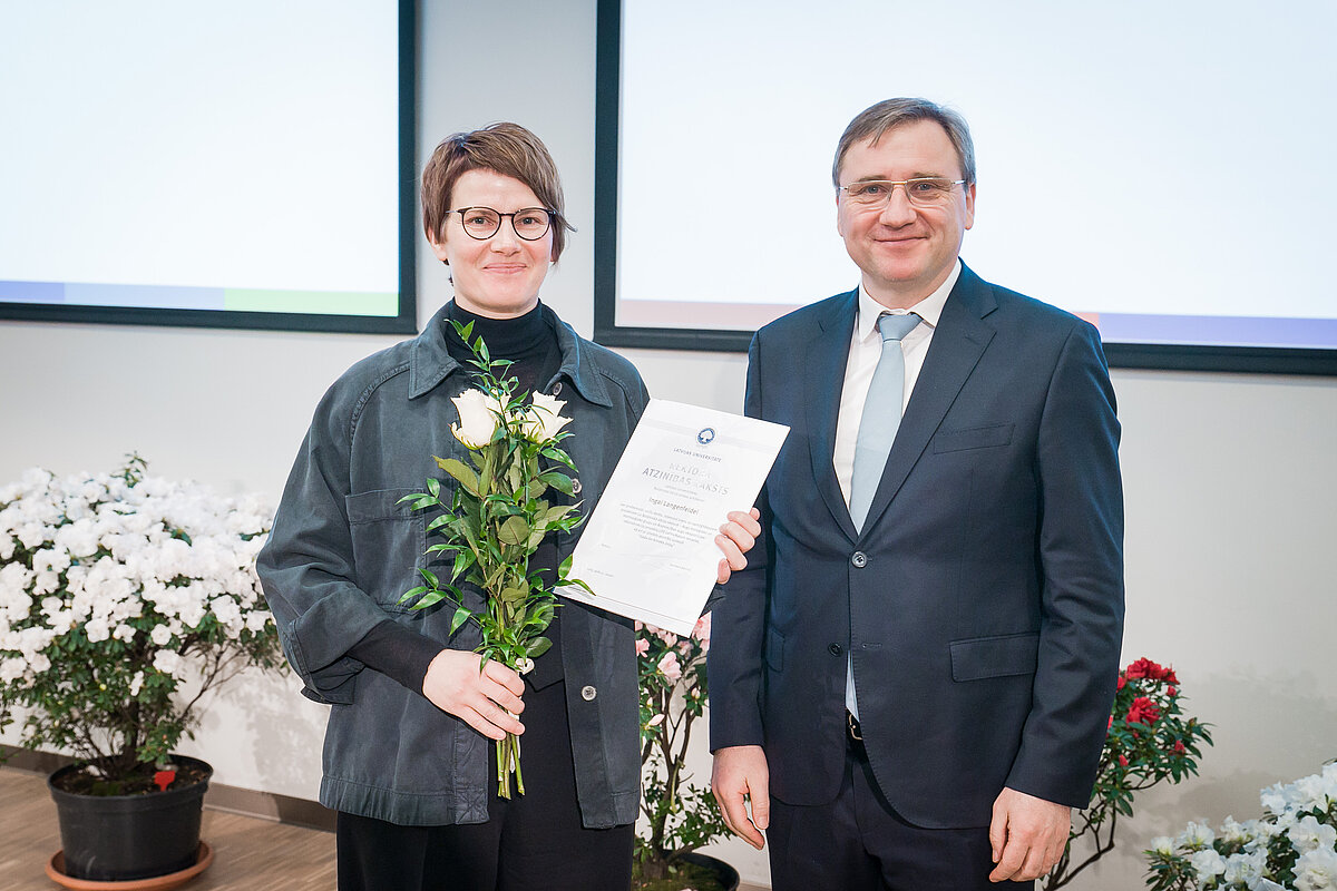 Botāniskā dārza ainavu arhitektei Ingai Langenfeldei par profesionāli izcilu darbu, īstenojot vienu no sarežģītākajiem projektiem LU Botāniskā dārza vēsturē – Augu bioloģisko un morfoloģisko grupu un Ārstniecības augu ekspozīcijas rekonstrukciju projekta LIFE LatViaNature ietvaros, kā arī ar izteikto atzinību aptaujā “Gada darbinieks 2024”.