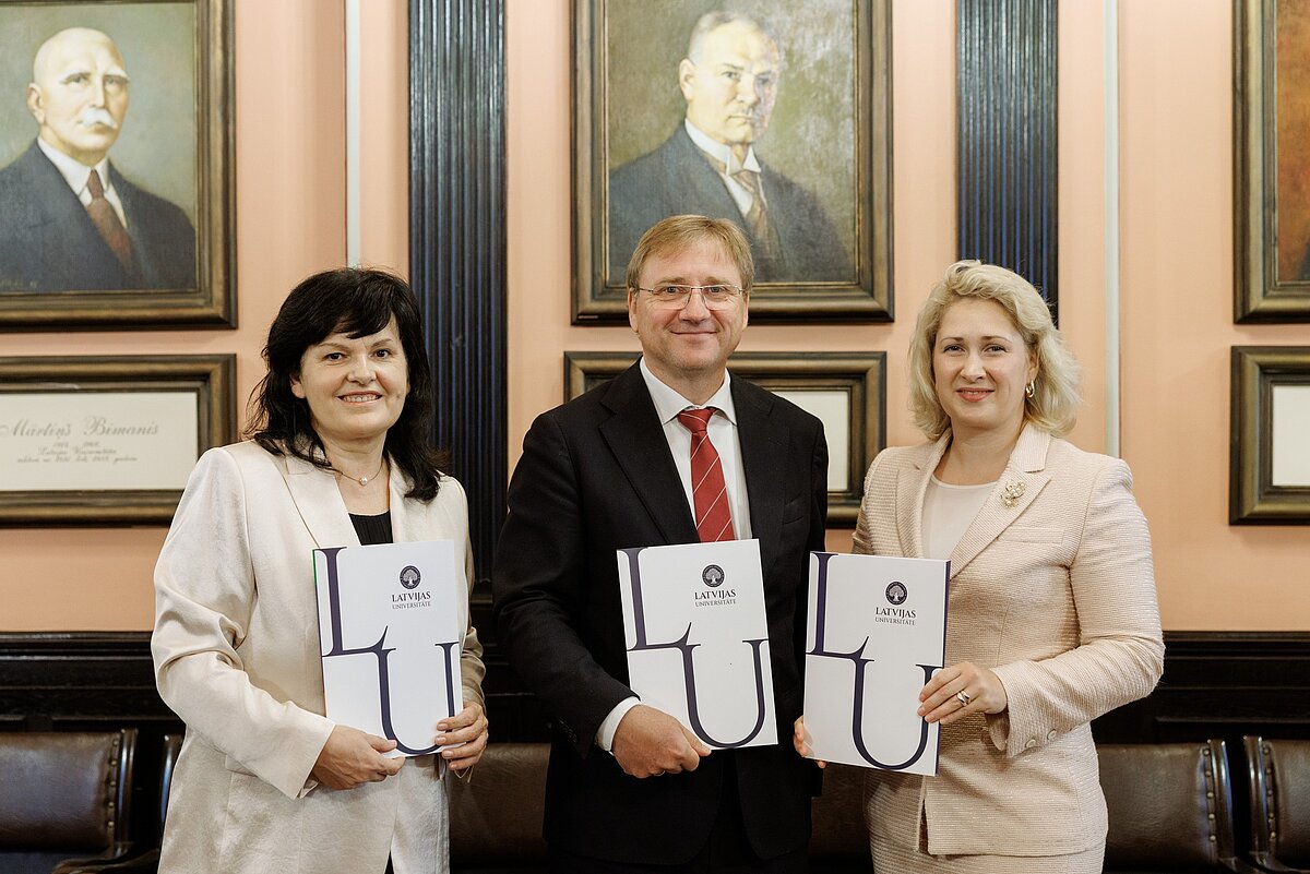 Parakstīts trīspusējs sadarbības līgums starp Latvijas Universitāti (LU), Banku augstskolu (BA) un Izglītības un zinātnes ministriju (IZM) par BA integrāciju LU ekosistēmā.