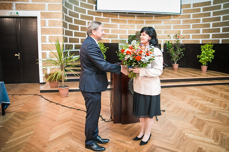 BA dekāna p.i. profesore Līga Peiseniece sveica BA personālu ar nozīmīga darba posma noslēgumu un jauna darba posma sākšanos.