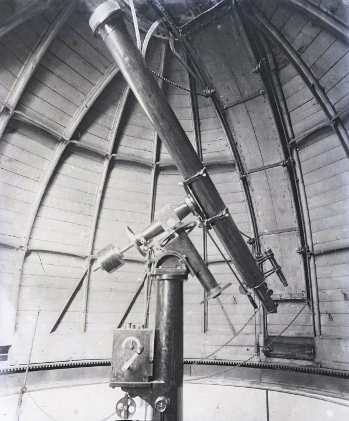 Drīz pēc Rīgas Politehnikuma pirmā korpusa būvniecības pabeigšanas, ap 1873. gadu tā Astronomiskajā tornī studentu un pasniedzēju vajadzībām tika uzstādīts teleskops – tā saucamais Fraunhofera vai Mēdlera refraktors. Šī teleskopa darba mūžs ir notikumiem bagāts. To izgatavoja vācu optiķis Jozefs Fraunhofers (Joseph Fraunhofer 1787-1826). Teleskopa parametri - objektīva diametrs 9,7 cm un fokusa attālums 137 cm. Šis instruments atradās Vilhelma Bēra (Wilhelm Wolff Beer 1797-1850) privātajā observatorijā Berlīnē. 19. gadsimta 30. gados vācu astronoms Johans Heinrihs Mēdlers (Johann Mädler 1794-1874) pie Bēra ar šo instrumentu veica Mēness virsmas novērojumus un noteica precīzu Marsa rotācijas periodu. Pēc V. Bēra nāves tika izpārdoti viņa observatorijas instrumenti un Fraunhofera refraktoru iegādājās J. Mēdlers kā piemiņu par jaunības dienu astronomiskajiem novērojumiem. Savukārt, kad J. Mēdlers devās pensijā, Fraunhofera refraktoru savā īpašumā ieguva Latvijas Universitātes priekštecis, Rīgas Politehnikums. [1]