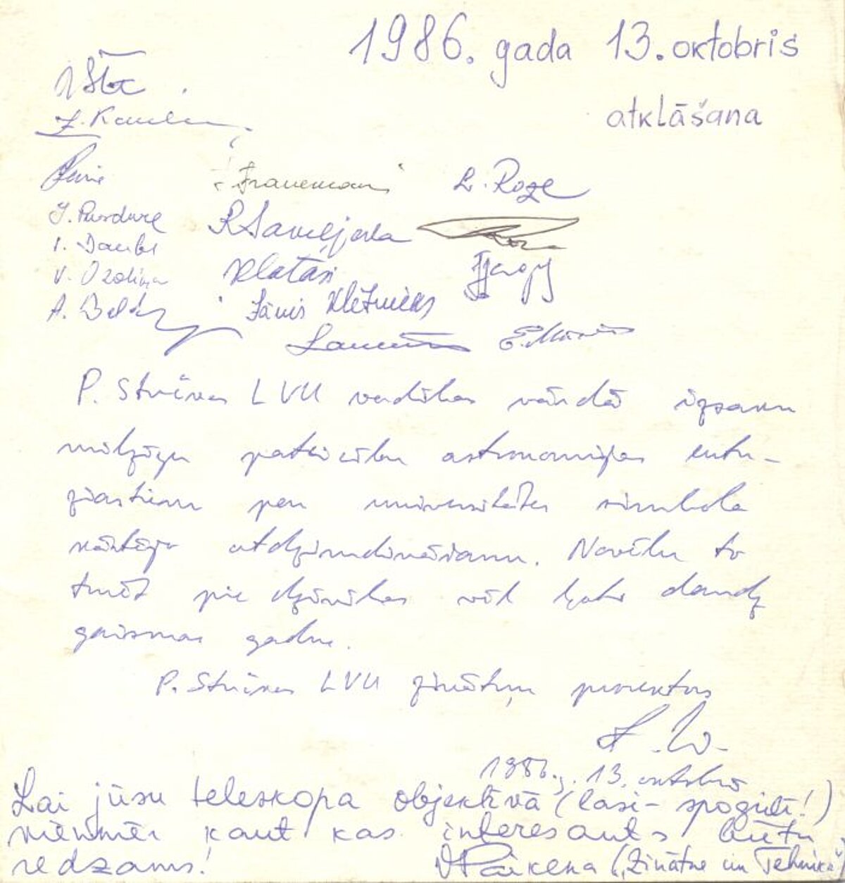 [6] Astronomiskās observatorijas viesu grāmata (1986 – 1987) CM1292