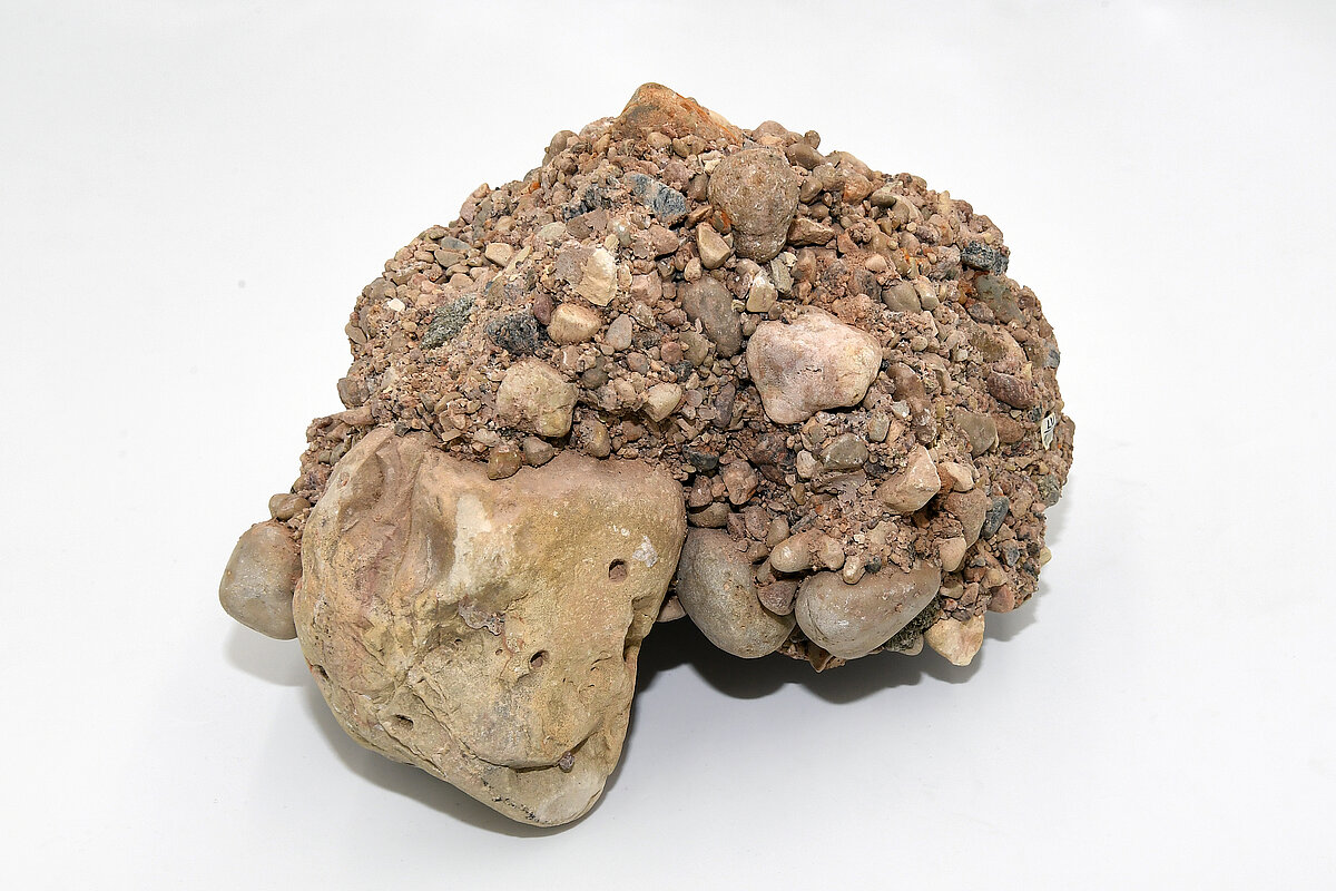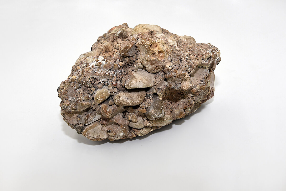 LU Muzeja Ģeoloģijas kolekciju ekspozīcijā ir konglomerāta paraugs, par kura ievākšanas vietu un ievācēju ziņas nav saglabājušās. Šis paraugs pieder pie vēsturiskās kvartāra iežu kolekcijas, kura tapusi laikā no 19.gs. beigām līdz 1940. gadam (tajā ietilpst Karla Bruno Dosa, Oto Meļļa u.c. ģeologu un dabas pētnieku ievāktie paraugi). To veidojošo oļu sastāvs ir sekojošs – dolomīta un kaļķakmens oļi (dolomīta oļi dominē), kuru izmēri aptuveni no 1 x 1 x 1 līdz 3 x 3 x 3 cm, daži rozā, pelēkas krāsas magmatisko iežu oļi, kuru izmēri aptuveni no 1 x 1 x 1 līdz 2 x 2 x 2 cm, šī konglomerāta sastāvā raksturīgi arī dolomīta un kaļķakmens, rozā, pelēkas krāsas magmatisko iežu/iespējams, metamorfo iežu grants graudi, kuru izmēri mazāki par 1 x 1 x 1 cm, un cementējošā viela tajā ir vidēji rupjas frakcijas, pelēkas krāsas kalcīts.