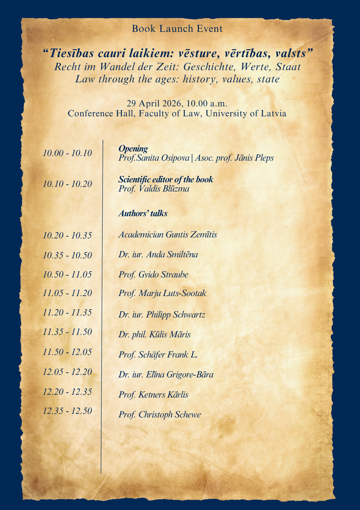 The book has been created as a tribute to Professor Jānis Lazdiņš, honoring his contribution to legal science, legal history research, and academic work. The launch event will bring together the book's authors and representatives of the academic community, highlighting the interconnectedness of legal history, values, and the development of the state.