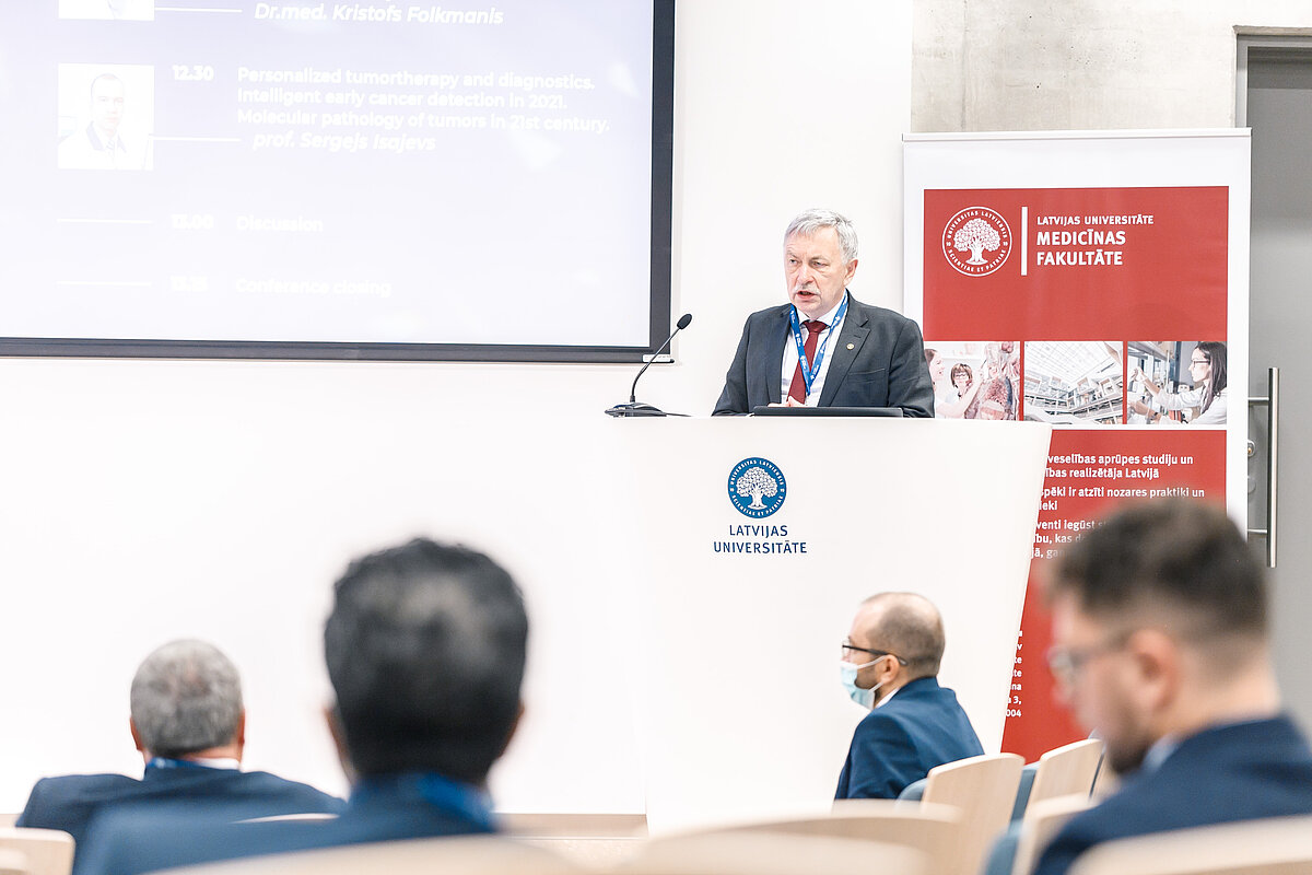 “Visi LU pētījumu virzieni laika gaitā kļūst par nepieciešamo daļu dzīvības, dabas zinātņu progresa nodrošināšanai,” uzrunājot konferences dalībniekus sacīja LU rektors, profesors Indriķis Muižnieks. “Mēs redzam medicīnas mijiedarbību ar dabas zinātnēm, materiālu un mehānikas zinātnēm, robotiku, radioķīmiju u.c. Savukārt universitāte ir tā vieta, kur visas zinātnes sastopas, ļaujot modernajai precīzijas medicīnai īstenoties savā pilnīgajā izpausmē.”
