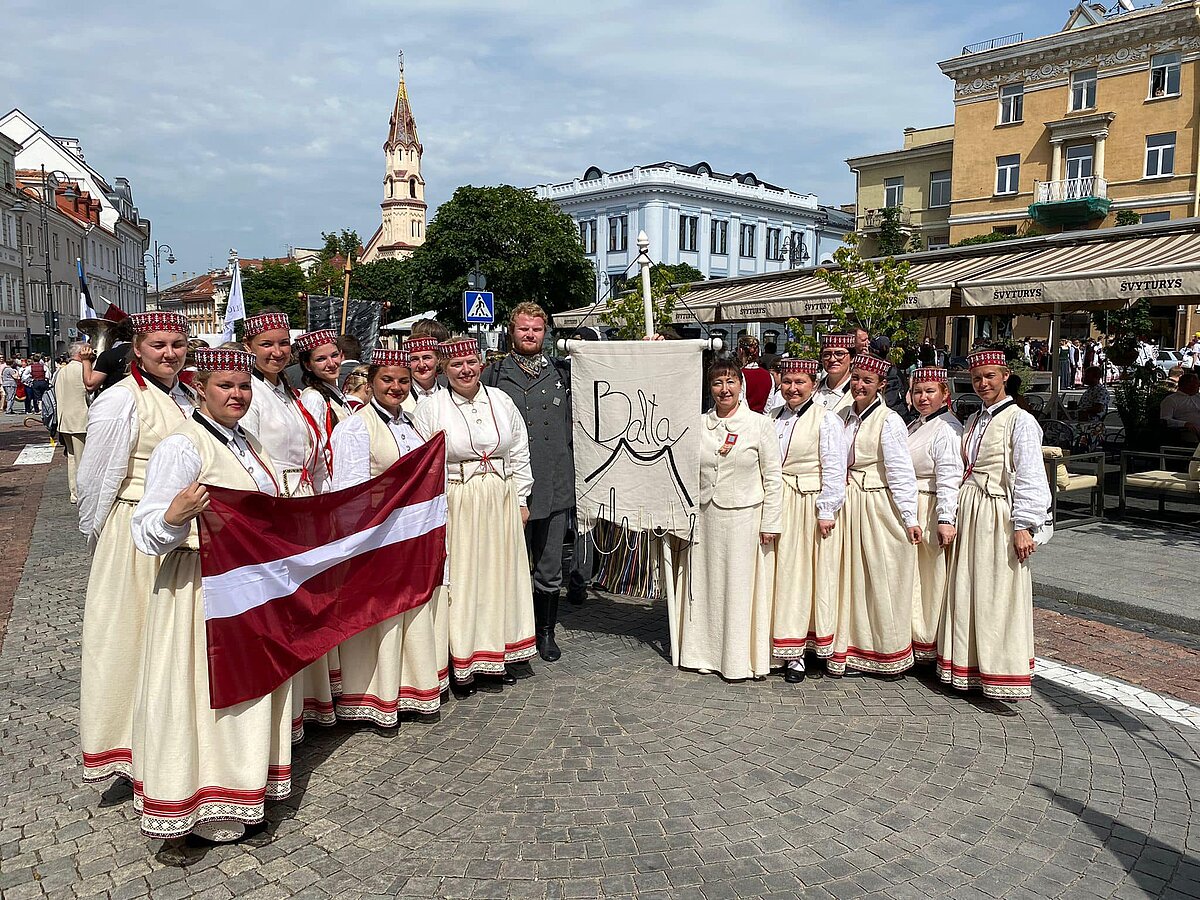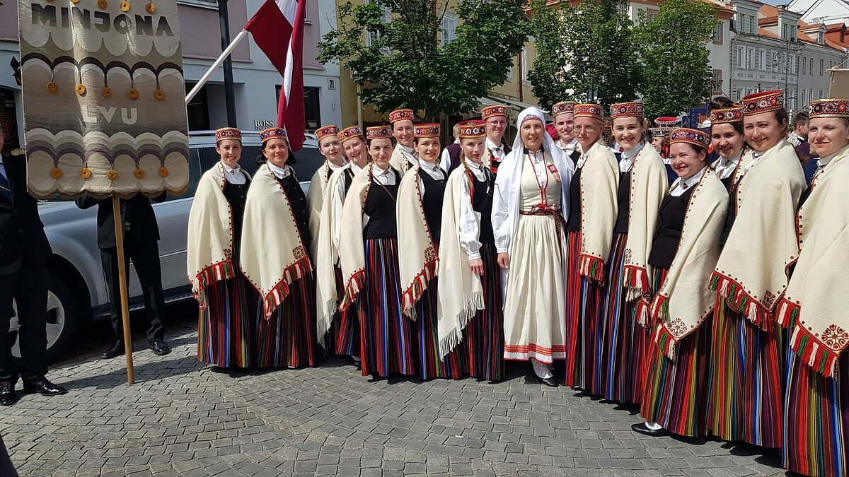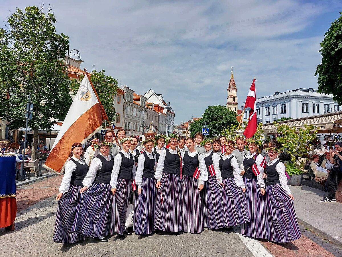 LU studentiem tika uzticēts gods nest Latvijas karogu valsts delegācijas priekšgalā svētku gājienā, kurš vijās no Viļņas Rātslaukuma vecpilsētā līdz Kalna parka estrādei. LU dejotāji no TDA Dancis kopā ar izglītības un zinātnes ministri Anitu Muižnieci arī saņēma Gaudeamus karogu, lai nākamie svētki 2026. gadā varētu noritēt Latvijā.