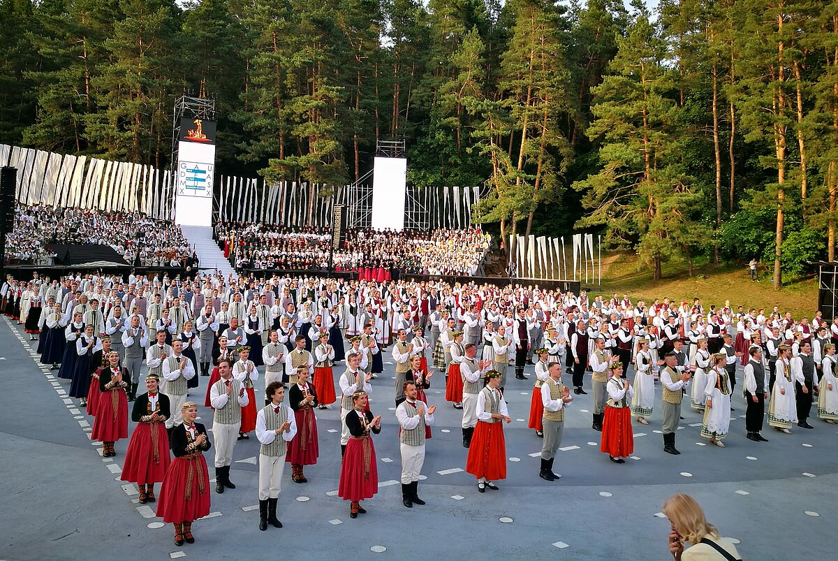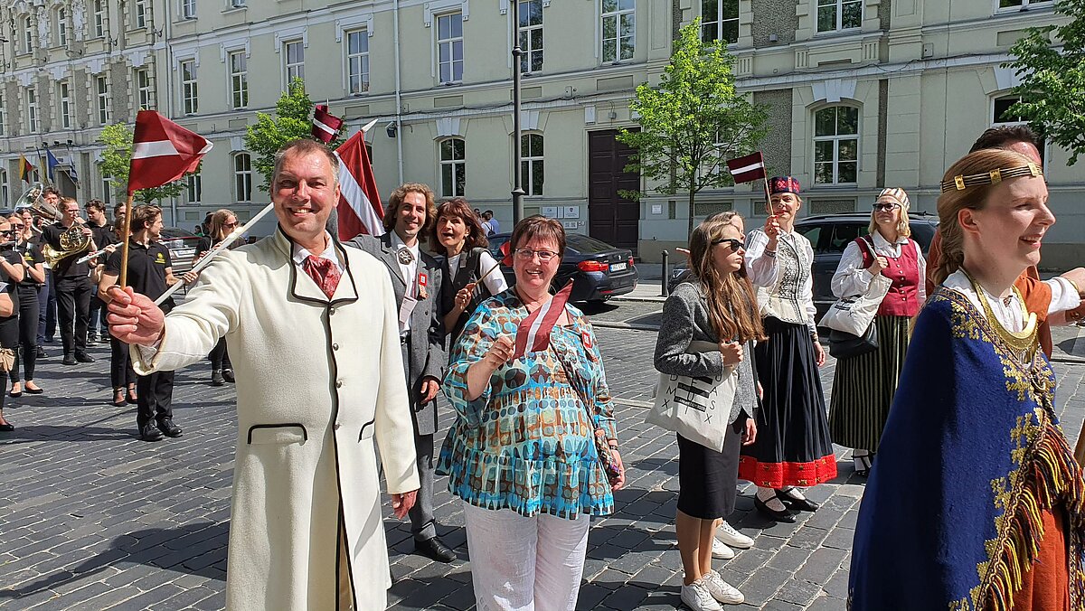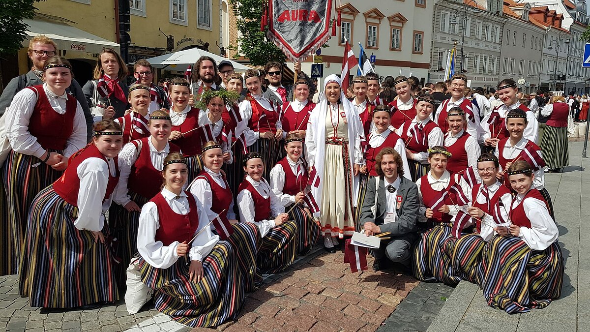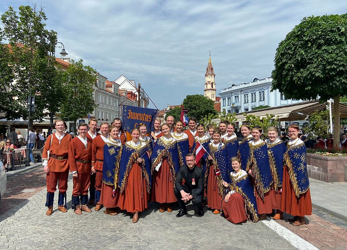 LU studentiem tika uzticēts gods nest Latvijas karogu valsts delegācijas priekšgalā svētku gājienā, kurš vijās no Viļņas Rātslaukuma vecpilsētā līdz Kalna parka estrādei. LU dejotāji no TDA Dancis kopā ar izglītības un zinātnes ministri Anitu Muižnieci arī saņēma Gaudeamus karogu, lai nākamie svētki 2026. gadā varētu noritēt Latvijā.